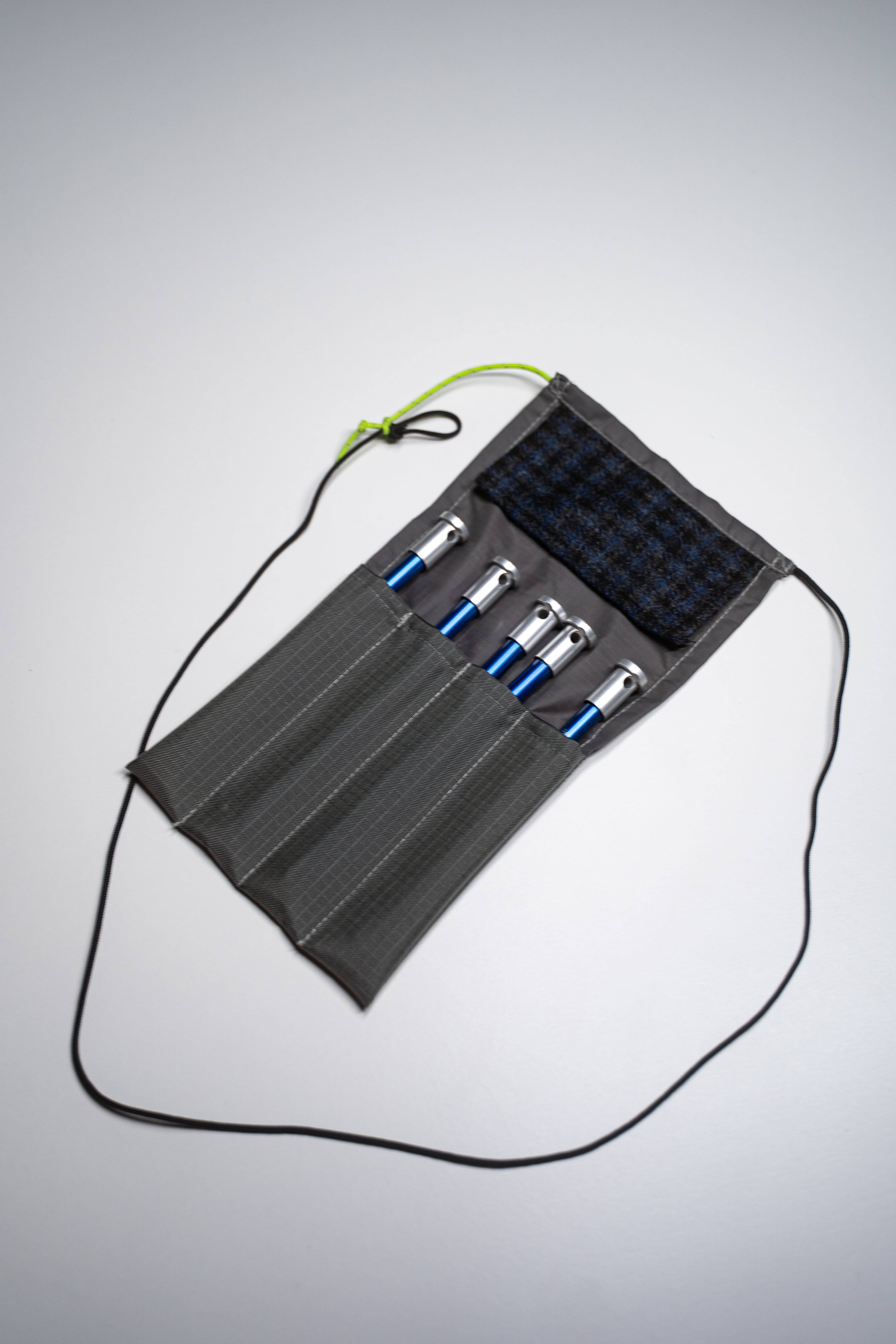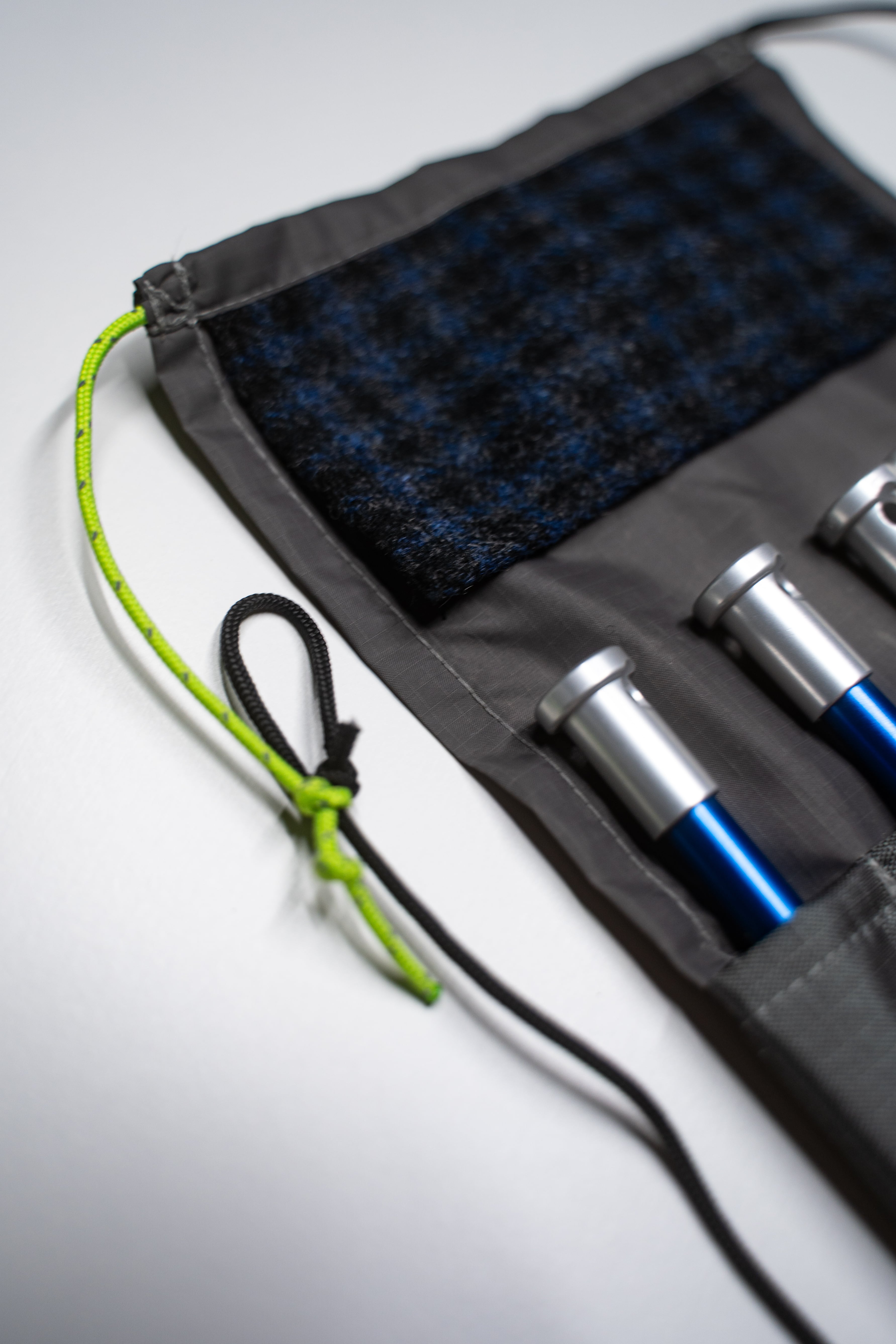 PUNK STAKERS は内側にウールクロスを縫い付け、ペグを抜いた瞬間にサッと拭き取れるようにしました。